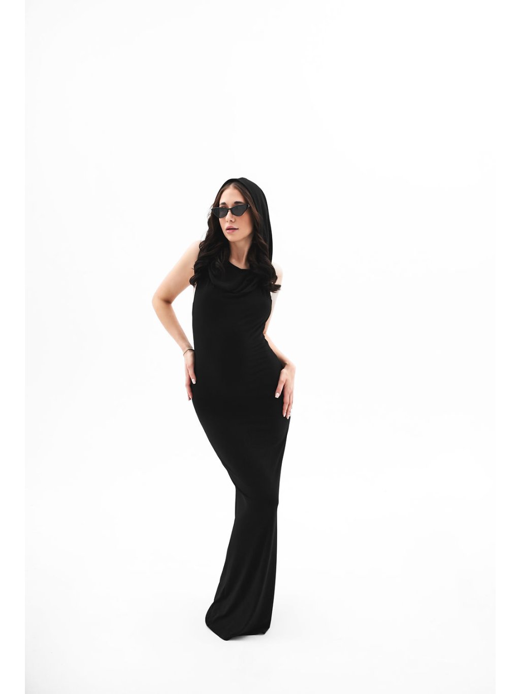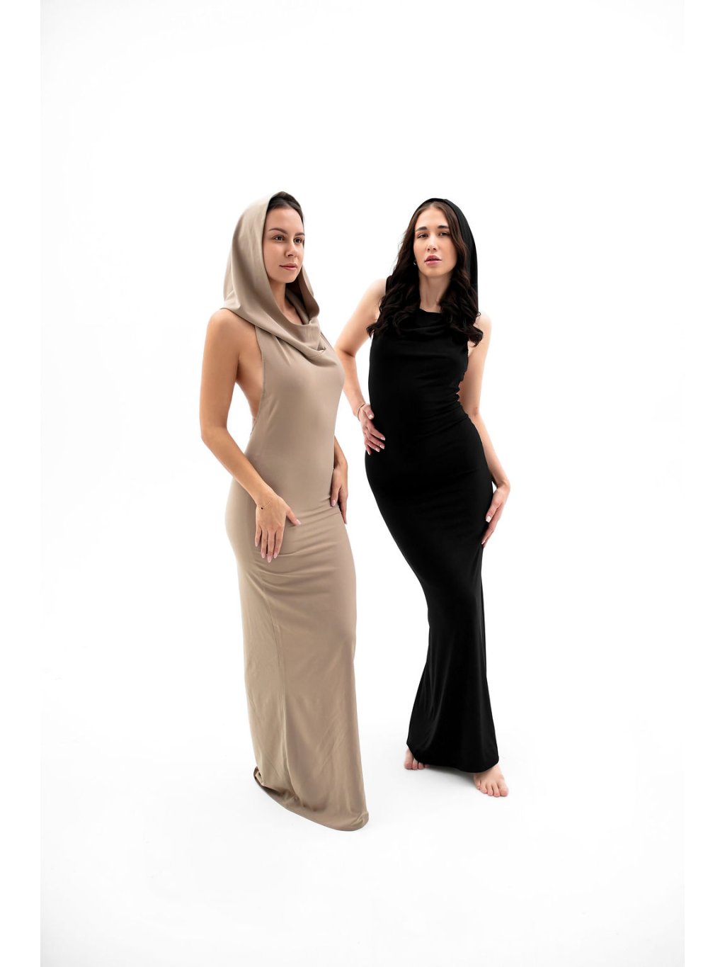 Naše signature šaty s kapucí s vykrojenými zády inspirované v milované Dubaji.