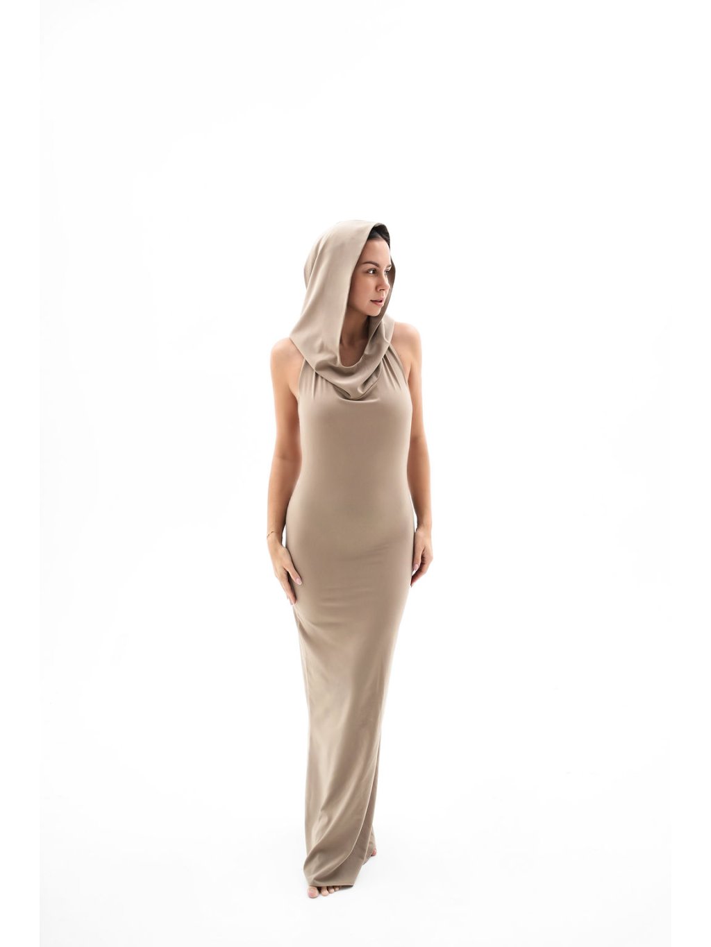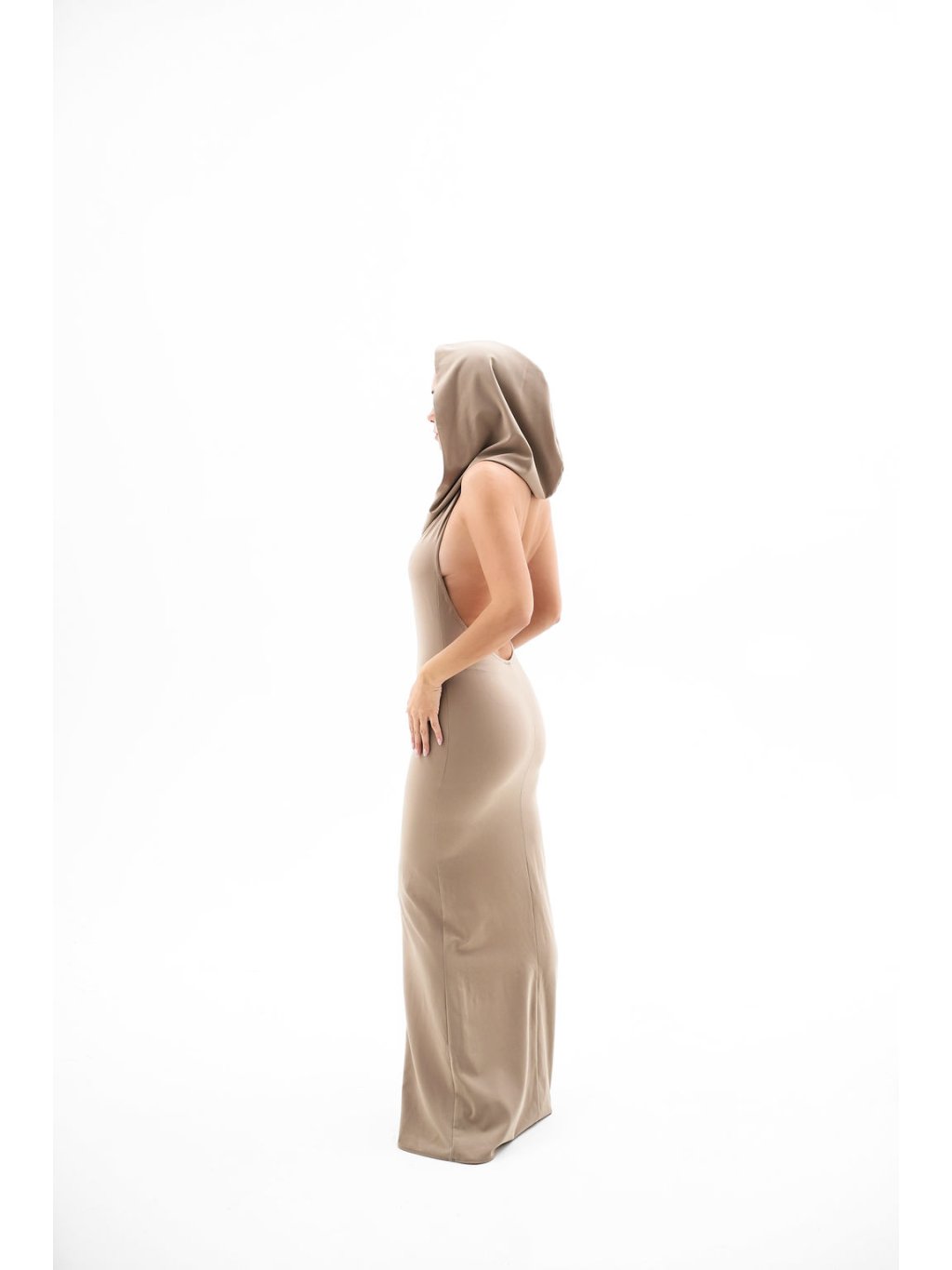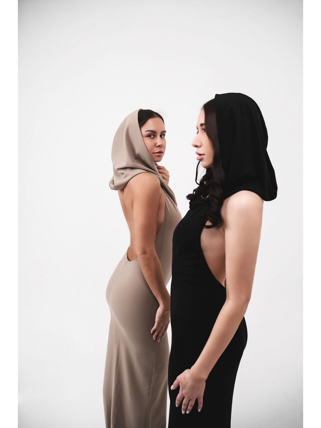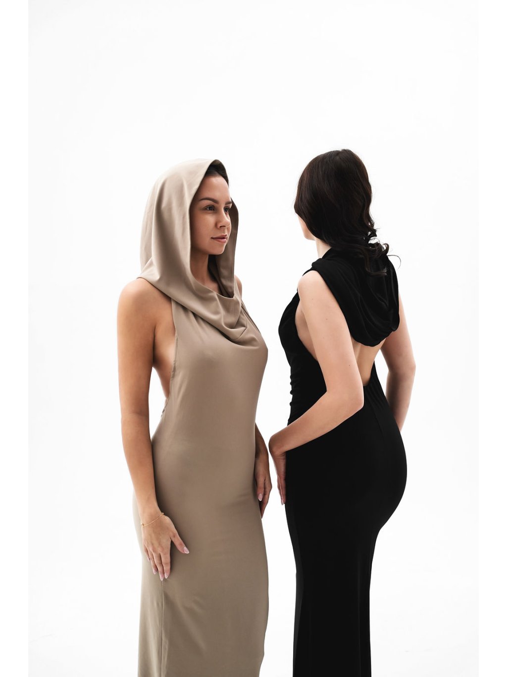 Ikonické šaty s kapucí s vykrojenými zády inspirované v milované Dubaji.